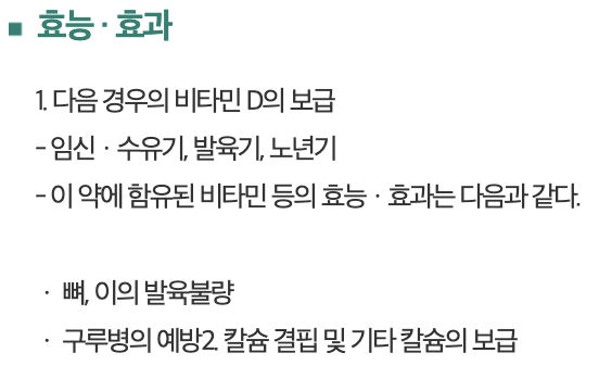- 디카맥스디정: 비타민D 1,000 IU + 칼슘 100mg